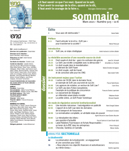 Consultez l’ENA hors les murs / Mars 2021 / n ° 503 (accès payant) consacré à la Soft Law et son sommaire.