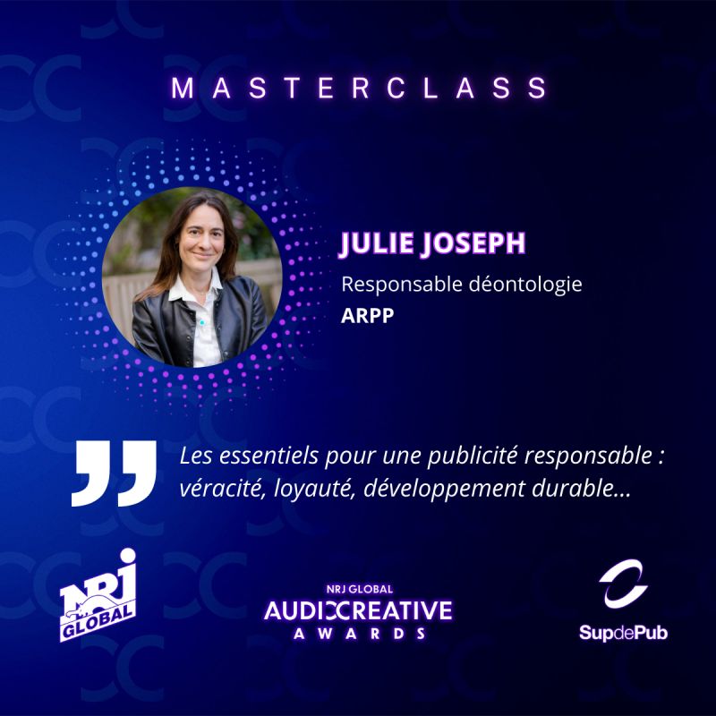 Julie Joseph, Responsable déontologie à l’ARPP à animer une master class [classe de maître] inspirante auprès des étudiants de Sup de Pub. Un moment précieux qui a permis aux étudiants de mieux comprendre les enjeux éthiques de la communication et de renforcer leurs compétences pour devenir les acteurs responsables de demain.