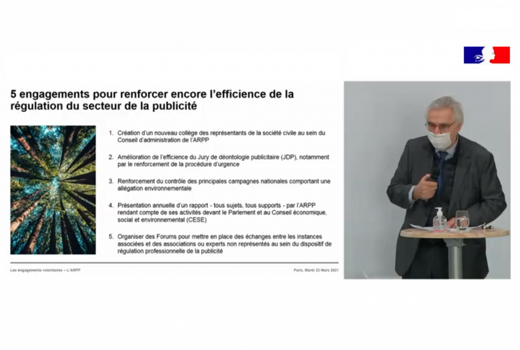 Lors d’une conférence de presse organisée, ce mardi 23 mars 2021, par Mesdames Barbara Pompili, ministre de la Transition Écologique et Olivia Grégoire, secrétaire d’État auprès du ministre de l’Économie, des Finances et de la Relance, chargée de l’Économie sociale, solidaire et responsable, l’ARPP a présenté ses 5 engagements pour renforcer l’efficience de la régulation professionnelle de la publicité concertée avec la société civile.
