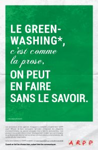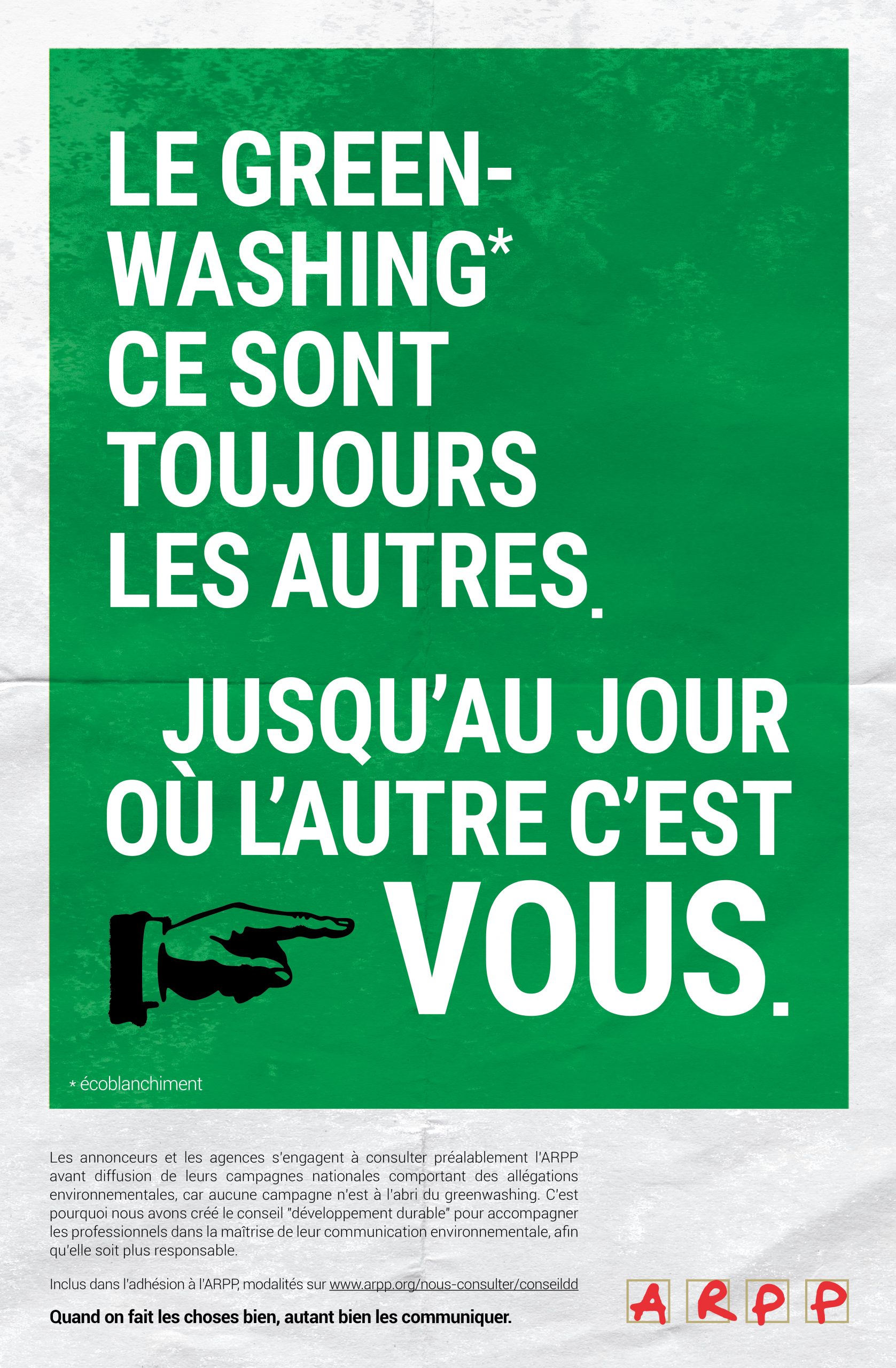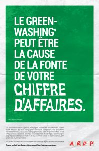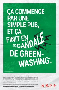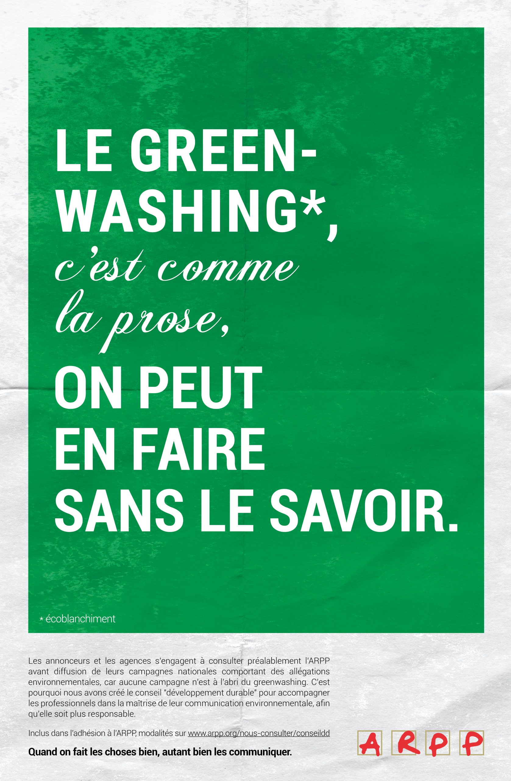 Pour que toute revendication, indication ou présentation, établissant un lien entre les marques, produits, services ou actions d’un annonceur, et le respect de l’environnement, soit conforme, l’ARPP fait la pédagogie de la précision des prises de parole environnementales. Dans sa campagne, plusieurs accroches l’illustrent, telles que : « Le greenwashing, c’est parfois juste une image qui vient polluer votre communication », « Ça commence par une simple pub et ça finit par un scandale de greenwashing », « Le greenwashing, c’est comme la prose, on peut en faire sans le savoir »…