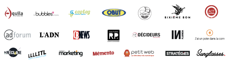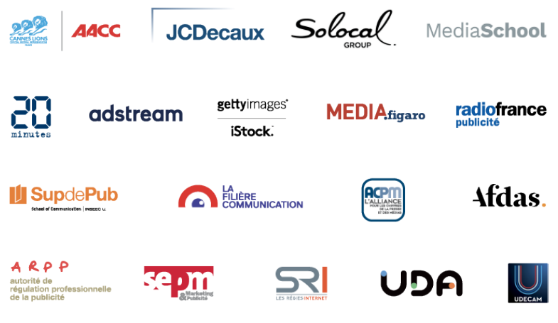 JCDecaux, Solocal et Mediaschool, les trois partenaires majeurs rendent possible cet événement, qui reçoit également le soutien de 20 Minutes, Adstream, Getty Images, MEDIA.figaro, Radio France Publicité, Sup de Pub. Les principales institutions de la profession sont également associées à ce rendez-vous : l’ACPM, l’Afdas, l’ARPP, la Filière Communication, le SEPM Marketing & Publicité, le SRI, l’Union Des Marques et l’Udecam.