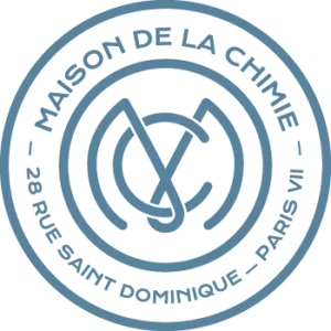 logo de la maison de la chimie, donc leur logo qui est une forme bleu foncé sur un fond blanc