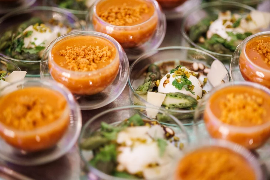 La Maison Lenôtre a proposé un buffet dinatoire 100% végétarien et un approvisionnement majoritairement local, mais aussi en privilégiant aucune vaisselle à usage unique avec une parité H/F du service traiteur totalement respectée.