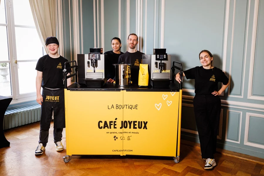 Café Joyeux est la première famille de cafés-restaurants et une marque de cafés de spécialité et thés d’exception, dont les bénéfices contribuent à l’emploi et à la formation des personnes en situation de handicap mental et cognitif.