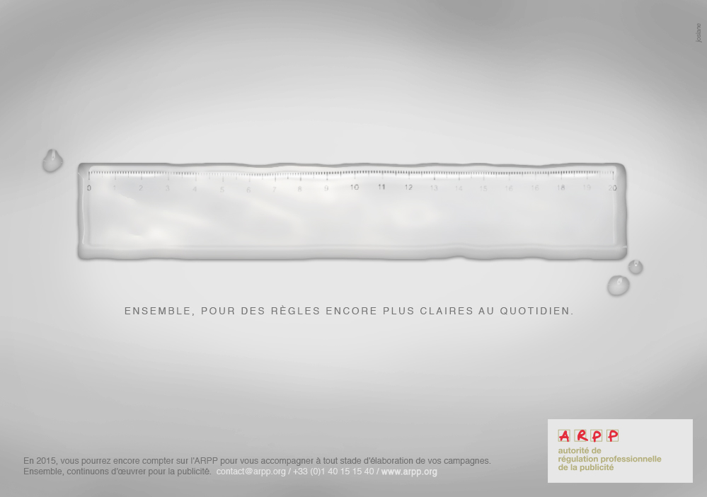 Stéphane Martin, Directeur général, inscrit ces trois visuels dans le plan d’action adopté par le Conseil d’Administration de l’ARPP : « 2015 est l’année de la révision, périodique, de la quarantaine de règles déontologiques de l’ARPP, pour éventuellement en supprimer, en actualiser, en créer, ou tout simplement les conserver en l’état. Les personnalités et les associations réunies avec les professionnels au sein des instances associées de l’ARPP, le Conseil de l’éthique publicitaire et le Conseil paritaire de la publicité, sont parties prenantes de cette revue intégrale. Chaque membre de l’ARPP, praticien de la publicité au quotidien, est statutairement concerné par cette relecture des règles. Tous sont invités à contribuer, par tous moyens, à ces travaux collaboratifs, devant aboutir à une nouvelle publication digitale et imprimée de ce Code consolidé des règles. »