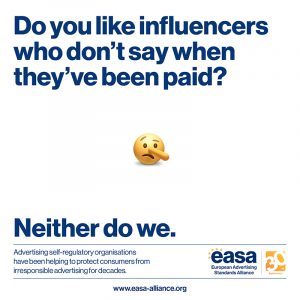 Le rôle de l’EASA est d’établir des normes opérationnelles élevées pour les systèmes d’autorégulation de la publicité, comme indiqué dans le modèle de bonnes pratiques et la Charte de l’EASA.