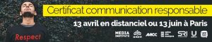 Inscriptions ouvertes pour le Certificat « Communication Responsable » Media Institute à destination des professionnels, les 13 avril en distanciel et 13 juin 2023 en présentiel à Paris.