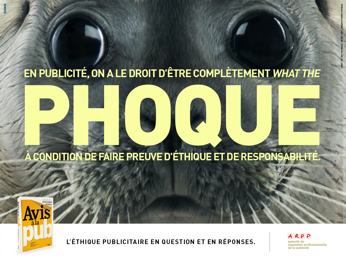 Dans cette série s’appuyant sur les avis du CEP, poule et phoque côtoient alien et potiche permettant à l’ARPP d’aborder avec légèreté et humour un sujet sérieux et indispensable pour la profession : l’éthique publicitaire.