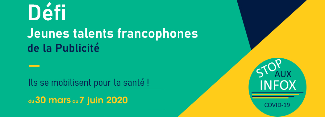 À compter du 30 mars 2020, L’Union francophone propose un nouveau défi aux jeunes talents francophones de la publicité afin de créer des campagnes de publicité « Stop aux Infox COVID-19 » via les réseaux sociaux.