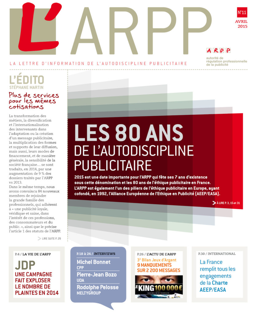 Lettre n°11 – Avril 2015 ARPP il y a 9 ans Télécharger le PDF Share on FacebookShare on TwitterShare on Linkedin