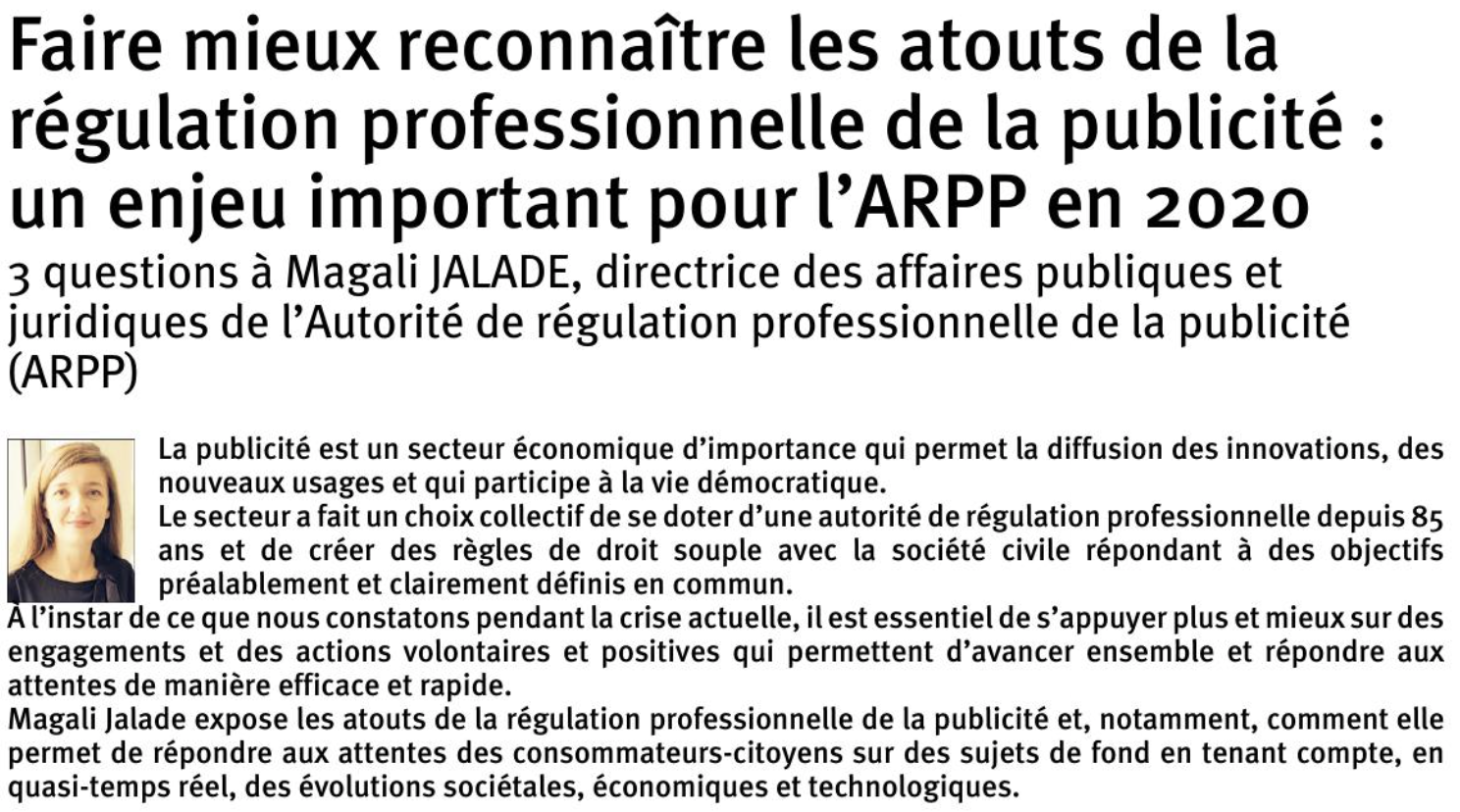 14.05.2020 – Magali Jalade, Directrice des Affaires publiques et juridiques de l’ARPP, répond à 3 questions dans la revue Communication – Commerce Electronique N°5 (LexisNexis)
