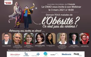 Dans le cadre des Journées Mondiales de l’Obésité, le Collectif National des Associations d’Obèses, agréé par le Ministère des solidarités et de la santé, qui réunit plus de 50 associations afin de sensibiliser pour mieux combattre l’obésité, a organisé un premier webinaire rassemblant des intervenants engagés dans la lutte contre l’obésité : L’Obésité ce n’est pas du cinéma !