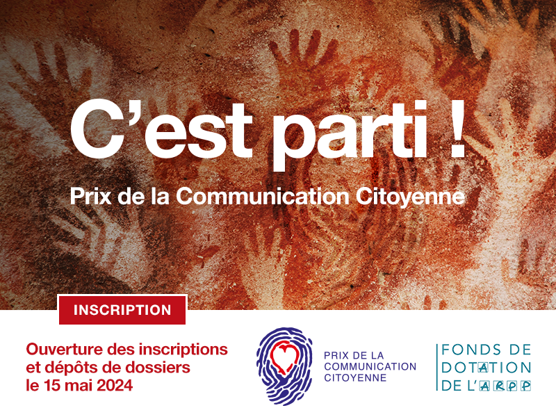 Le Fonds de Dotation de l’ARPP annonce l’ouverture des inscriptions et des dépôts de Dossiers au concours au Prix de la Communication Citoyenne (PCC). L’édition 2024 récompensera les campagnes et /ou actions de communication dont la vocation est d’améliorer les comportements individuels et collectifs, de défendre de grandes causes ou de promouvoir les engagements citoyens d’entreprises privées ou publiques réalisées et mises en œuvre entre le 1er juillet 2023 et le 30 juin 2024; il invite les agences, les annonceurs et les régies médias à déposer leur(s) dossier(s) dès le 15 mai 2024 – Participation gratuite, ici https://pcc.fdarpp.org/inscription/