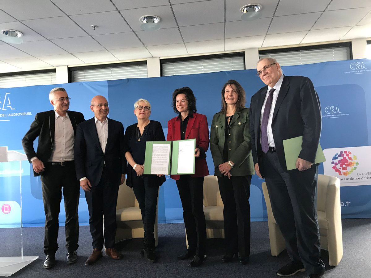 Stéphane Martin pour l’ARPP, aux côtés de Jean-Luc Chétrit (UDA), de Marie-Pierre Bordet (AACC), de Mercedes Erra (BETC, filière Communication), de Sylvie Pierre-Brossolette et Nicolas Curien pour le CSA, a cosigné la Charte d’engagements volontaires pour la lutte contre les stéréotypes sexuels, sexistes et sexués dans la publicité.